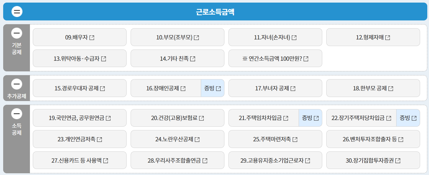 소득공제 항목별 안내