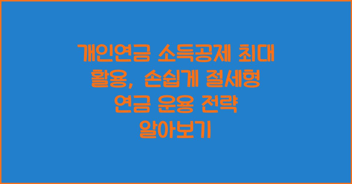 개인연금은 장기적으로 안정적인 노후 자금을 마련하기 위한 중요한 수단입니다. 많은 사람들이 이러한 개인연금의 혜택을 모르고 지나치고 있습니다. 개인연금 소득공제 최대 활용 방법을 통해 절세형 연금 운용 전략을 알아보면, 당신의 재정적인 미래를 안전하게 지킬 수 있습니다.