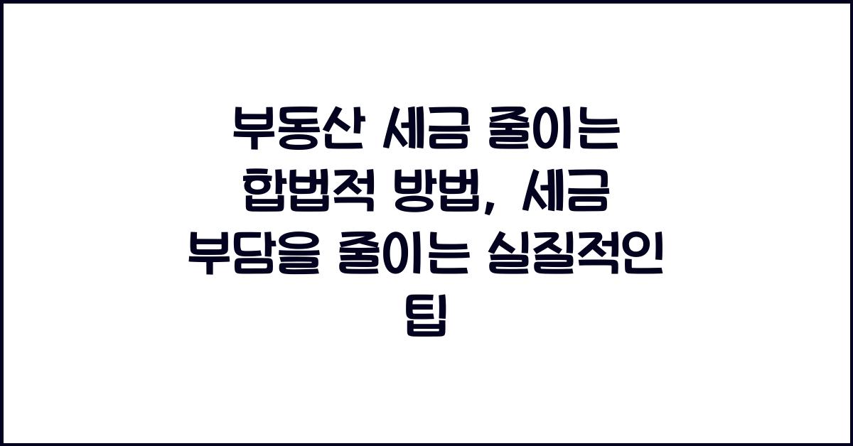 부동산을 소유하고 있다면, 세금에 대한 압박이 늘 수 있습니다. 저도 처음에는 막막함을 느꼈는데, 실제로 다양한 절세 전략을 통해 세금을 줄일 수 있다는 것을 알게 되었습니다. 부동산 세금 줄이는 합법적 방법이 궁금하시다면, 저의 경험을 통해 유용한 정보와 노하우를 얻어보세요.