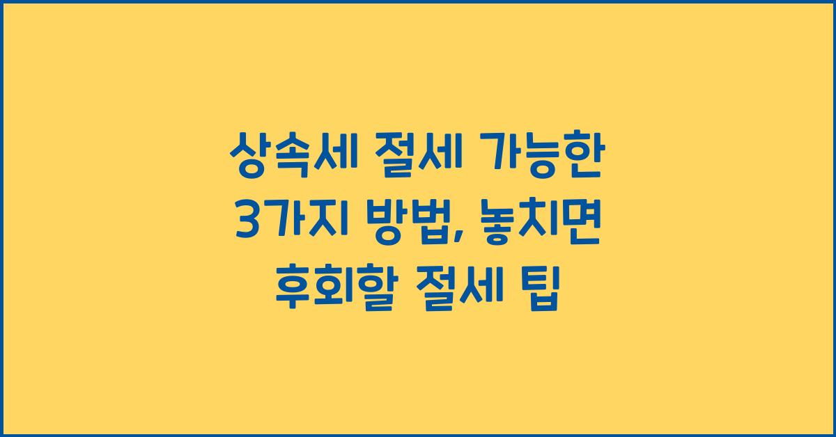 상속세는 많은 사람들이 한 번쯤 겪어보는 복잡한 문제입니다. 어떻게 해야 할지 모르는 순간, 세금 부담에 대해 걱정하는 분들이 많습니다. 저도 최근에 가족의 재산을 물려받으면서 상속세에 대한 갈등을 겪어보았습니다. 상속세 절세 가능한 3가지 방법에 대해 알아보면, 이러한 걱정을 덜 수 있을 것 같습니다.