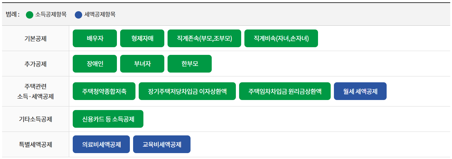 소득공제 항목별 안내